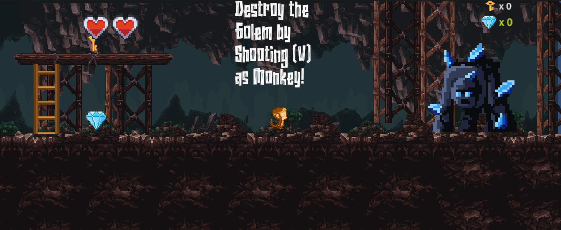 In this 2D platformer you journey as a shapeshifter changing between a Monkey, Cheetah, Gorilla, and Snake. With each characters' unique abilities, fight your way through various enemies and obstacles to reach the next level.